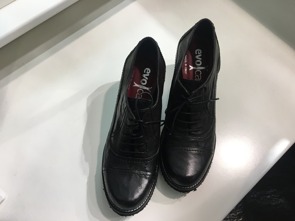 • Scarpa allacciata in pelle marrone. Tacco alto cm 5.